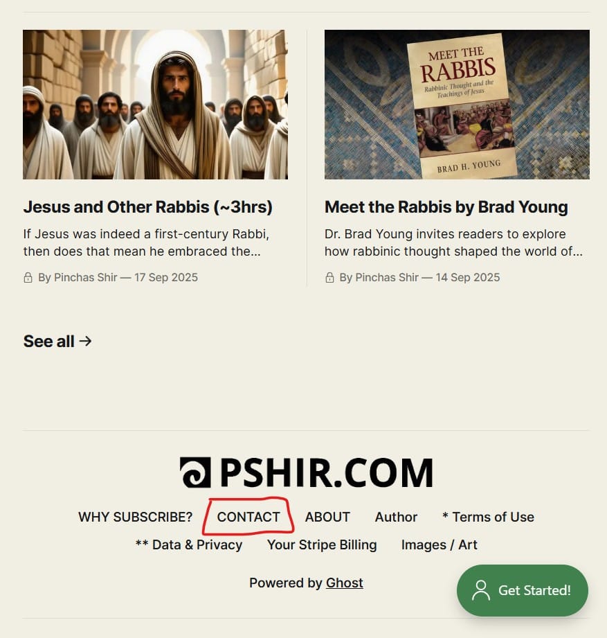 Connect: Paid subscribers see an option to dialogue and discuss anything they read, watch, or listen to with others. And if you need to get in touch with Pinchas directly, use the Contact form (in the website footer).